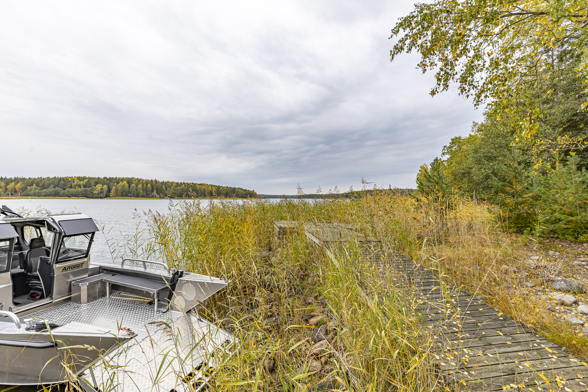 JYKEVÄ KALLIOINEN RAKENNUSPAIKKA Paikalla sijaitsee pikkumökki terasseineen, grillikatoksineen mutta aika on tehnyt tehtävänsä joten mökkiä voi toki käyttää mutta päivittämällä sen, saat ihanteellisen lomapaikan. Rakennusoikeutta 200 m2. Porakaivo ja sähköliittymä siirtyy kaupassa. Ranta avautuu luoteiseen ja ilta-aurinkoa riittää. Predium satamaan viiden minuutin matka veneellä. Tammisaaren kaupunginrantaan viisitoista minuuttia. Siis ihanteellinen saarisijainti. Rantaa on ruopattu n. 10 vuotta sitten ja siinä on ollut laituri mutta nyt nostettu rantakiville. Ei siis mitään kivikkoista rantautumista. Rakennukset ovat tosiaan alkuperäisessä kunnossa kuin myös rappuset alhaalta rannasta korkealle kalliolle.